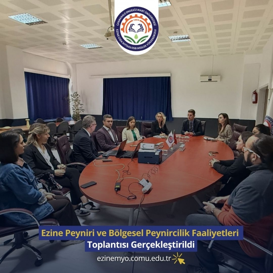 Ezine Gıda İhtisas OSB Meslek Yüksekokulu’nda, Ezine Peyniri ve bölgesel peynircilik faaliyetlerine yönelik önemli bir toplantı gerçekleştirildi. Toplantı, GEMAR Çevre Ölçüm ve İSG Laboratuvarı ile yürütülmesi planlanan çalışmalar kapsamında, projenin hayata geçirilmesine yönelik değerlendirmelerde bulunmak amacıyla düzenlendi.